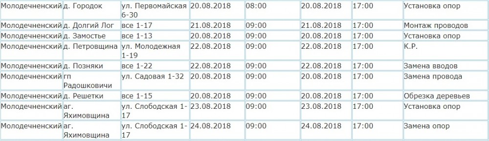 Яхимовщина, Радошковичи, Городок. Где еще в Молодечненском районе не будет света (график)