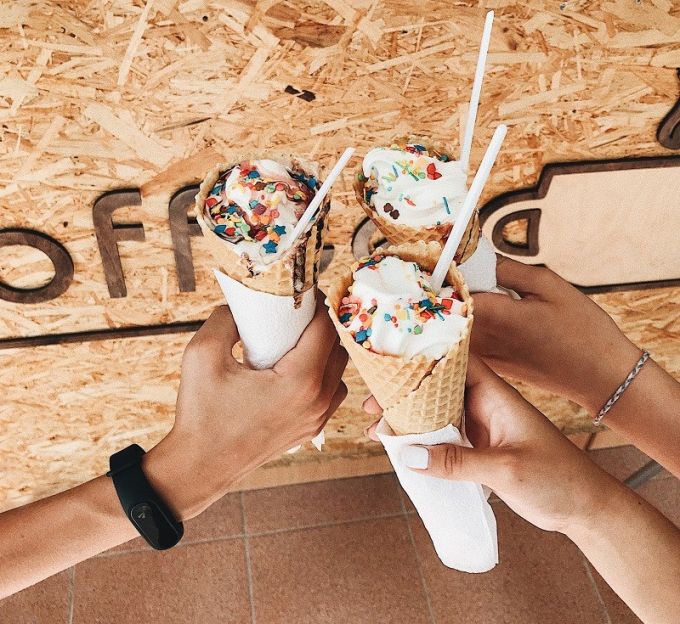 Фишка заведения – мягкое мороженое, которое можно дополнить топпингом по вкусу. Мороженое делают из итальянской смеси, которая отличается мягким сливочным вкусом. Мягкой и нежной консистенции холодного десерта добиваются за счет изготовления в специальном фризере. Смесь разводят в определенной пропорции с молоком, помещают в емкость фризера и спустя пару минут вращения и заморозки она превращается в приятный продукт.