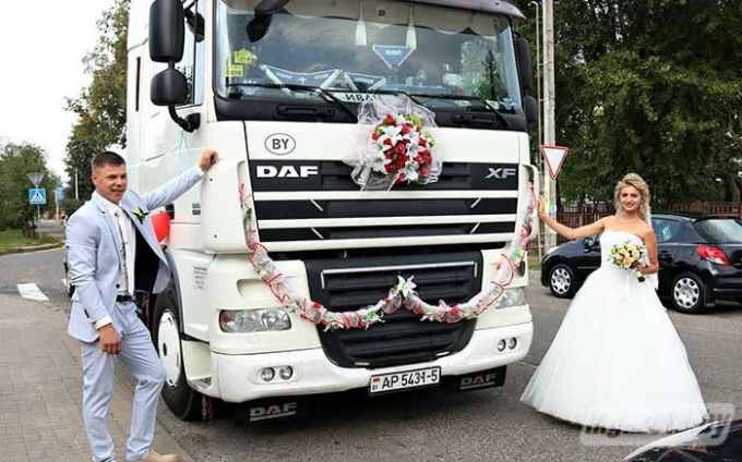 Предполагалось, что и невеста Оксана Грачковская прибудет на такой же машине, да случилась накладка, и ей пришлось пересесть на Subaru. Но все равно оригинальная задумка удалась, и на память о самом важном событии в жизни у Оксаны и Яна останутся фотографии, сделанные в самой большой кабине среди тягачей европейского типа.