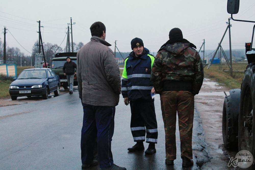 Пока едем, госавтоинспектор рассказывает: в Молодечненском районе ДТП, когда водители врезались в необозначенную в темноте сельхозтехнику, не было. Но ГАИ все равно регулярно проводит подобные рейды.