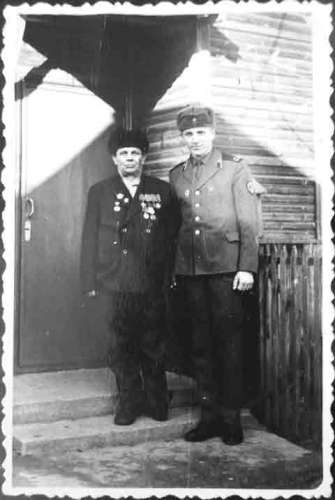 Штогод на свята Перамогі чышчу яго ўзнагароды. Але насіць медалі і хадзіць на святкаванне 9 мая ён не любіў. Вось на гэтым фотаздымку, дзе мы з ім, ён першы раз надзеў усе медалі, каб сфатаграфавацца са мной – я якраз вярнуўся з арміі. Гэта быў 1973 год.