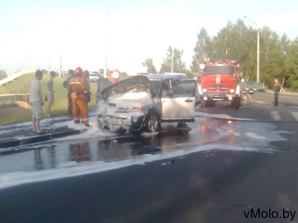 Сегодня (22 мая), около 19:00 на мосту в Молодечно загорелся автомобиль.