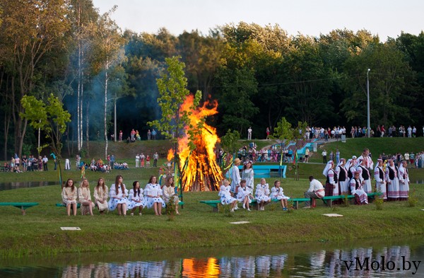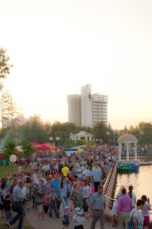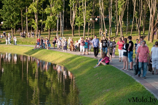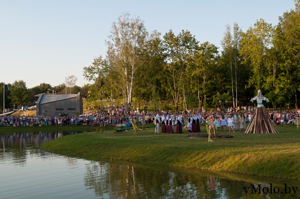 В субботу, 6 июля, Молодечно отпраздновал свой 625 День рождения. В этот день город был наполнен улыбками, громкой музыкой, попкорном и аттракционами. В 20:00 на острове верхнего озера горожан ждало небольшое представление, посвященное Купалью. На берегах озера уютно устроились молодые пары, бабушки и дедушки а также гости нашего города. Во время не самого интересного представления, никто не расходился, т.к. все ждали сжигания чучела. Кто-то кормил рыб в озере, бросая им хлеб, а кто-то просто собирал цветы на лужайке.