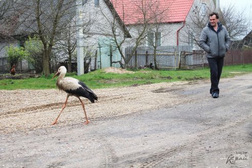 Хотите узнать больше? Жители Лесных в Молодечно подкармливают аиста. Фото Катерины Сушко, Край.бай Три недели назад на подворьях жителей Молодечно по улице Новый Свет