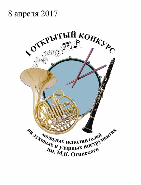 Хотите узнать больше? Логотип первого открытого конкурса исполнителей на духовых и ударных инструментах имени Огинского, который пройдет в Молодечно 8 апреля. Фото