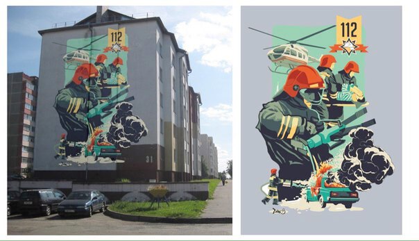 Хотите узнать больше? Новое граффити МЧС в Молодечно по Скорины, 31. Фото с сайта mlyn.by Граффитисты из Минска приступили к работе вечером 3 ноября. На доме по ул. Ф.