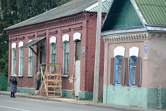 Столетний дом по ул. Копыльской, 9. Ранее одну из трёх квартир выкупил представитель частного бизнеса. И вот в пятницу, 26 июля, прежний вход заделан кирпичной кладкой, а на месте окна прорублен новый.