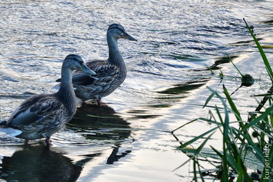 31 июля. Дикие утки на набережной в районе Чёртового моста. В погожие вечера некторые случчане, проводя время реки могут наблюдать за выводком этих птиц. Утки не сильно боятся людей, но слишком близко к себе не подпускают. Фото: Алесь Достанко