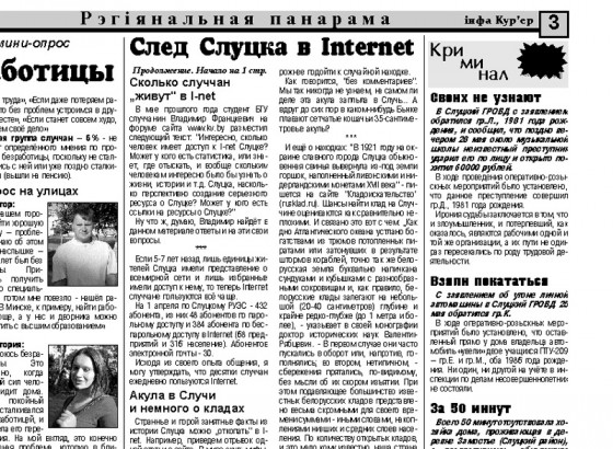 (Из цикла публикаций «След Слуцка в Internet. Взгляд на нашу жизнь из виртуального мира» («Кур'ер» №24 от 5 июня 2003 г.)