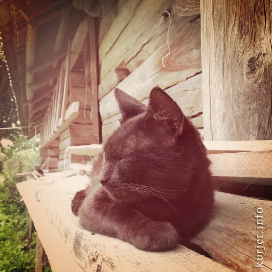 Кот, отдыхающий возле сарая. Сельчане особо ценят таких хищников, которые хорошо полюют на мышей. Некоторые коты не едят пойманных ими грузынов, а приносят их к порогу хозяевм двора, взамен получая более «цивильную пайку».