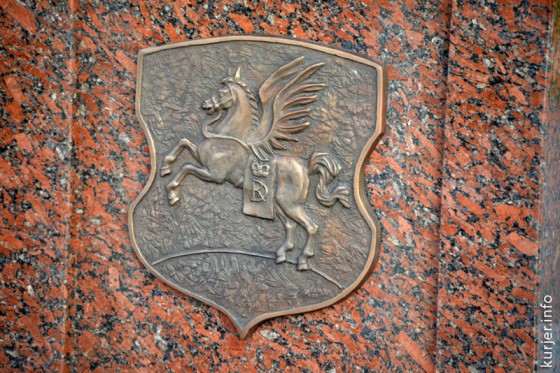 С одной стороны постамента — герб Слуцка, с другой — вензель Радзивилов (смотрите также на видео к публикации).