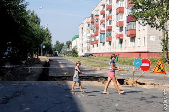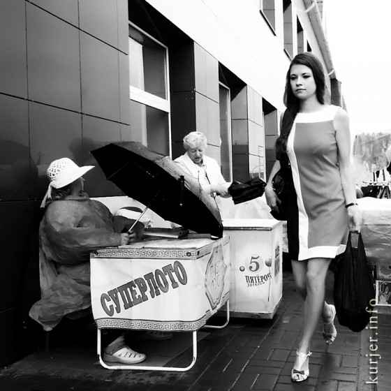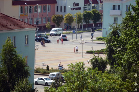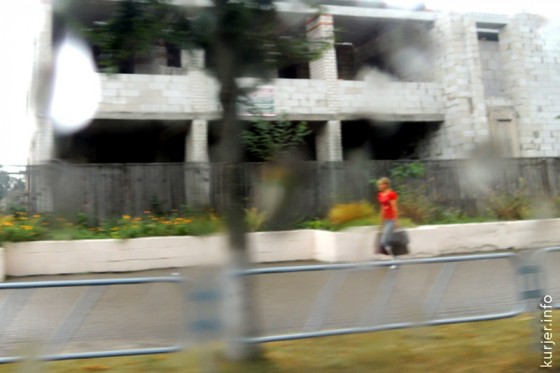 Про красную кофточку. Возле реконструируемого здания бывшего кафе «Хвілінка», которое, как планируется, станет пиццерией.