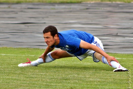 КАПИТАН. Вячеслав Григоров во время разминки перед матчем.