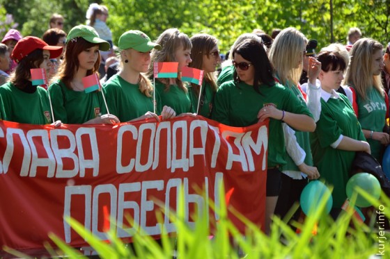 В Слуцке во внешнем оформлении улиц, зданий, помещений и даже в расцветке одежды всё чаще можно встретить сочетание зелёных и красных цветов, в соответствии с основными цветами флага Республики Беларусь.