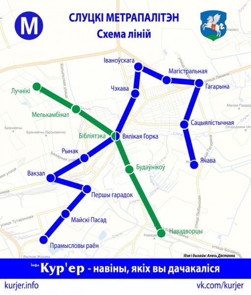 Это, конечно, фантазия. В Слуцке метро наверное, никогда не будет. Хотя б железную дорогу из Слуцка в Минск построили (этого, наверное, тоже никогда не будет). Но — пофантазируем и попробуем посмотреть, какие станции метрополитена могли бы быть в Слуцке и вдруг вы первыми дождётесь этой новости в газете «Кур'ер».