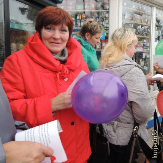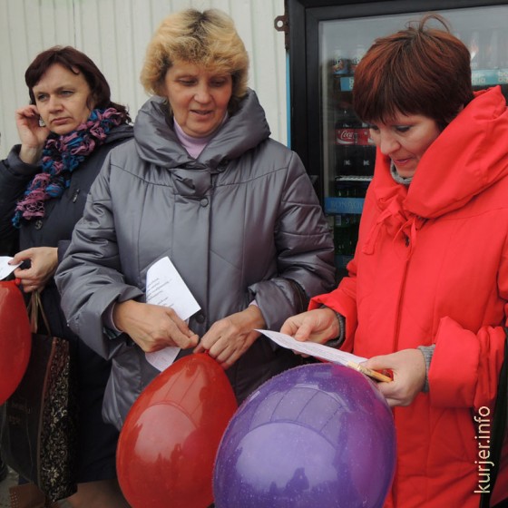 «Вооружившись» шариками, шоколадками, открытками, календарями и хорошим настроением участники акции вышли на улицу. Во главе с педагогом-психологом Юлией Голотик они подходили к встречным дамам и вручали им эти сувениры, а также произносили поздравительные слова.