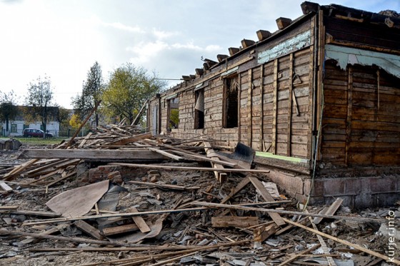 Октябрь. Строители разбирают здание, где ещё весной этого года располагалось учреждение, известное как Станция юных техников. Фото: Алесь Достанко