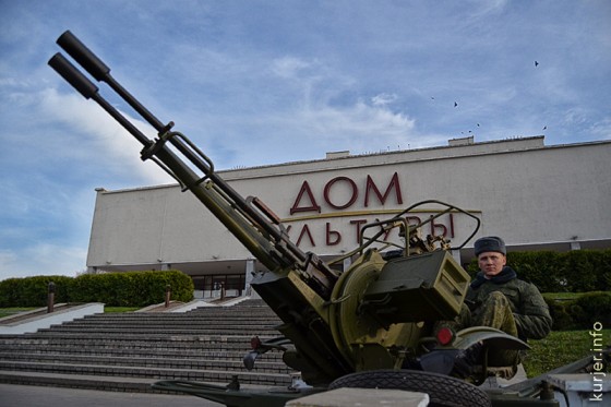 Зенитки в центре Слуцка и бесплатная каша возле ресторана