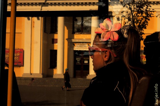 6 октября. Девочка в городском автобусе в районе кинотеатра «Беларусь». Фото: Алесь Достанко