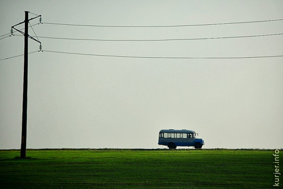 14 октября. Минимализм по-сельски — мачта, поле и автобус. С наступлением глубокой осени вид сельской местности становится всё более пустынным. Фото: Алесь Достанко
