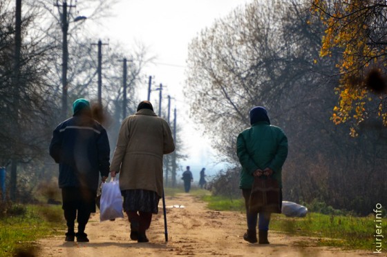 24 октября. Жительницы деревни Вынищи возвращаются домой из местного магазина. Фото: Алесь Достанко