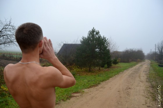 26 октября. Деревня Борок, что недалеко от деревни Гольчичи. Молодой человек зовёт своего соседа. Фото: Алесь Достанко