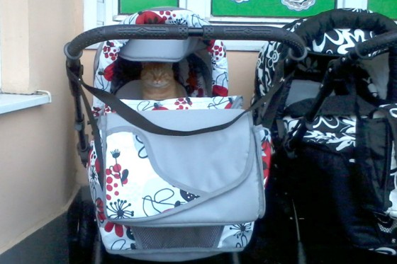 Фотоэкспансия: котэ в коляске и играющий пёс