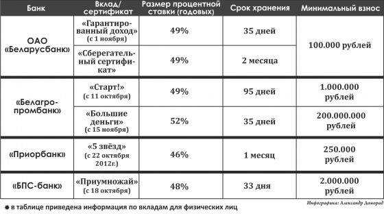За последние пару месяцев ставки по вкладам в белорусских рублях выросли до 50% годовых, причём некоторые банки снизили срок хранения до месяца.