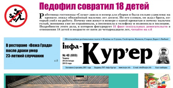 СЛУЦКИЙ ПЕДОФИЛ СОВРАТИЛ 18 ДЕТЕЙ. «Работница гостиницы «Слуцк» зашла в номер для уборки и была сильно удивлена: на кровати лежал обнажённый мальчик лет десяти. По его словам, он ждал брата, который ушёл на работу. Почему они живут в номере с одной кроватью и почему мальчик голый, женщина уже не спрашивала, а поспешила к телефону и позвонила в милицию».