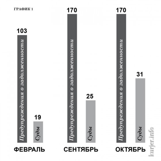 Количество предупреждений, вынесенных за последние месяцы, наглядно иллюстрирует реакцию случчан на повышение стоимости электроэнергии. Говорит об этом и увеличение судебных исков (см. график 1).