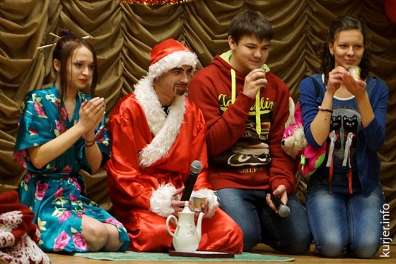 На новогоднем празднике в СШ №10 имени Рубанова учащиеся и педагоги отправились в путешествие к Дедам Морозам разных стран, танцевали зажигательный танец и разыграли главный приз вечера – наушники от 11 «Б» класса. Праздничная программа состоялась в понедельник, 23 декабря.