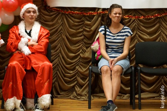 Алла Долгих, классный руководитель 11 «Б», поздравила всех присутствующих с наступающим Новым 2014 годом. Поблагодарила свою выпускницу Инну Петровскую, которая поставила ребятам замечательный танцевальный номер, и Евгения Романцевича, своего нынешнего воспитанника, за то, что придумал сценарий праздника.