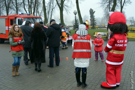 Возле ГДК прошли показательные выступления сотрудников райотдела по чрезвычайным ситуациям «Безопасный Новый год», а также от ГАИ — «За безопасное движение». Фото: Алесь Достанко