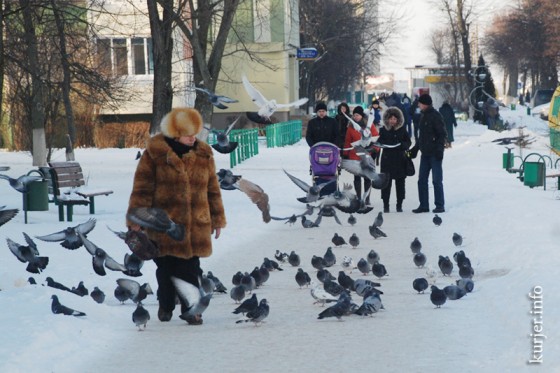 Особенно тяжело в морозы приходится пернатым. Борясь за выживание, они идут к человеку. Типичная для Солигорска картина. Стая из нескольких десятков голубей бросается прохожим под ноги. Люди не останавливаются, идут дальше. Птицы взлетают и вновь садятся перед ними. Голуби буквально заглядывают в глаза людям: они просят есть. Один из прохожих заходит в магазин и выносит батон, который затем крошит за землю. Насытившись, птицы улетели.