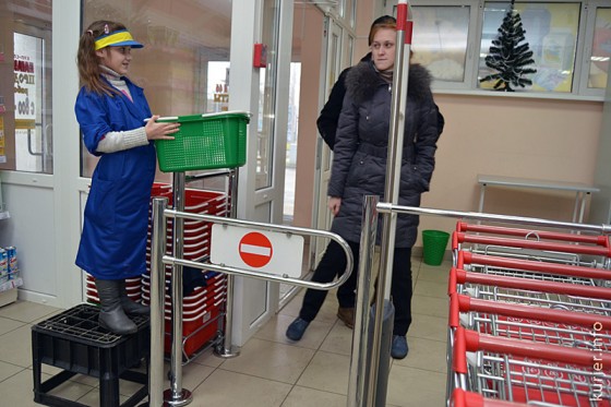 5 января. В этот день посетителей магазина №46 у входа встречала юная случчанка, приветствуя и подавая им корзины для покупок. Школьные каникулы второклассница СШ№12 Мила Санитарова проводит с пользой — у бабушки Тамары на работе. Фото: Алесь Достанко