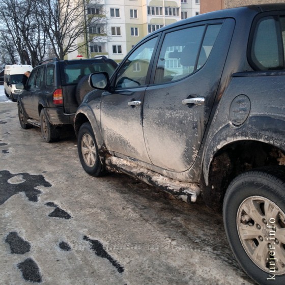 26 января. Песчано-соляная смесь, рассыпаемая на улицах города, оседает не только на обуви горожан, но и на автомобилях. Фото: Алесь Достанко