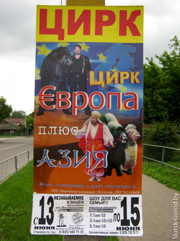 Чуть больше недели назад повсеместно на улицах Слуцка появились афиши, оповещающие, что с 13 по 15 июня в городе будет выступать цирк с грандиозной "мега-программой в двух отделениях".