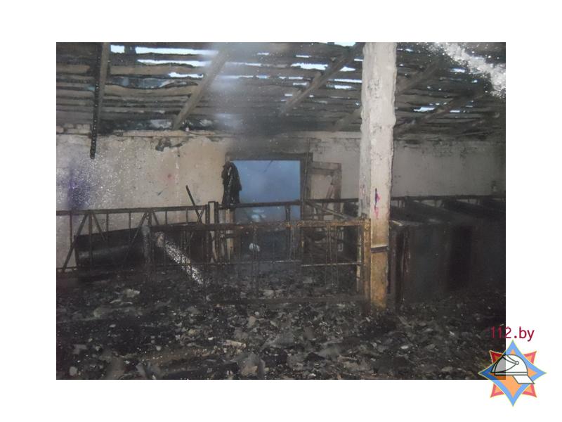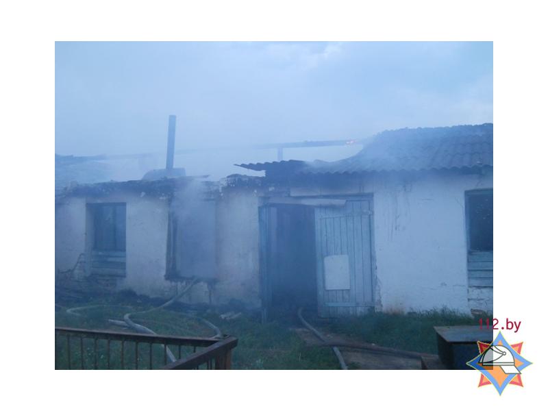 Сообщение о пожаре в здании телятника в д. Комсичи Копыльского района поступило на «101» 6 июня в 20.49. Прибывшие спасатели обнаружили, что открытым пламенем горела крыша переходной галереи телятника.
