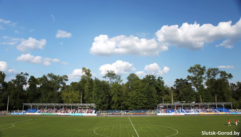 Официального открытия стадиона и праздничного шоу в субботу, 5 июля, в Слуцке не состоялось. Тем не менее, фактическим открытием стал матч с «Белшиной», который прошёл в рамках 16-го тура чемпионата Беларуси по футболу. Кроме того, по стечению обстоятельств игра с «Белшиной» стала и юбилейным, 400-м с начала основания футбольного клуба «Слуцк» матчем. Матч посетило 1900 человек.