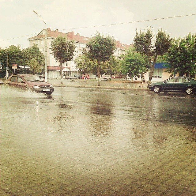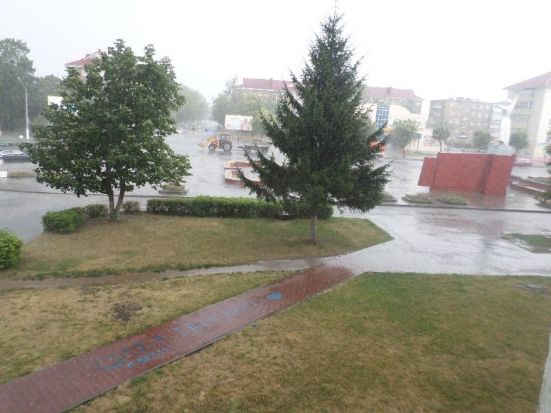 После долгих дней жары и засухи, почти покорённого температурного рекорда в +36,1°, объявленного запрета на посещение лесов, жарких и криминальных выходных, в Слуцке наконец прошёл дождь.