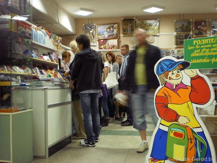 Товары для школьников можно приобрести во всех торговых организациях Слуцка. В широком ассортименте они представлены на школьных ярмарках коммунального унитарного предприятия «Универмаг «Слуцк» и закрытого акционерного общества «Торговый Дом» г.Слуцк».