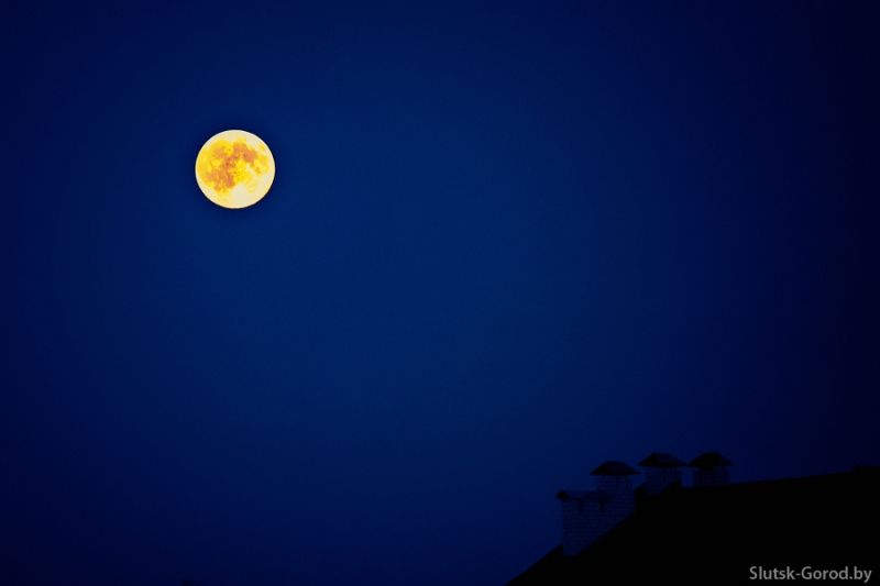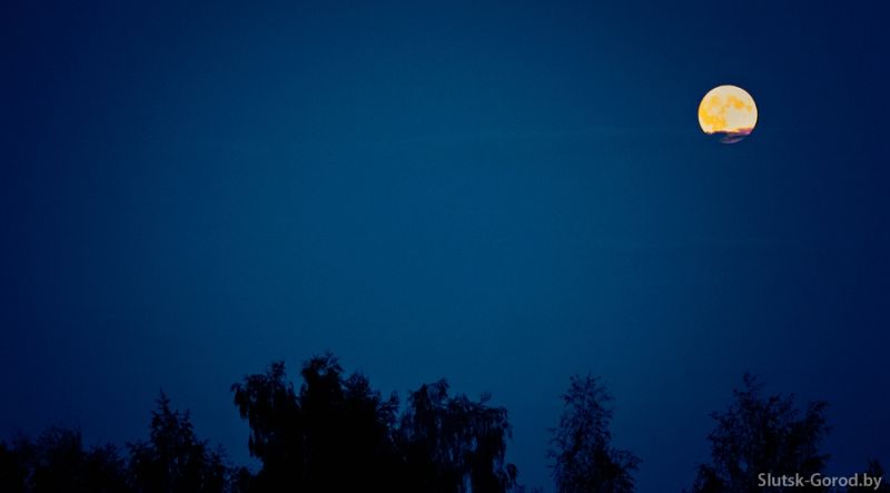 Вечер 10 августа 2014, Слуцк. Астрономы говорили, что в эту ночь будет суперлуние - явление, когда полнолуние совпадает со сближением Луны и Земли, а Луна при этом кажется намного больше и ярче.