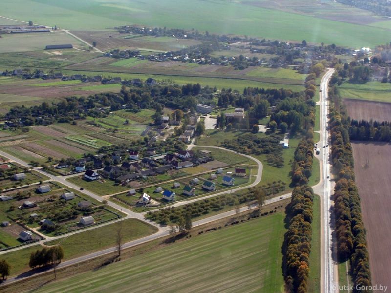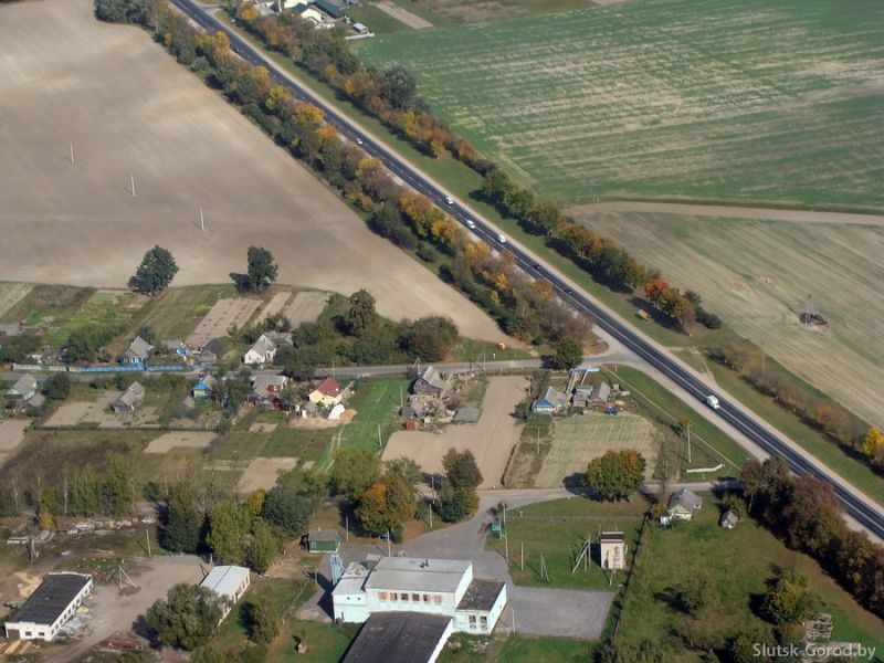 Трасса Р23 и часть деревни Бокшицы, в правом нижнем углу кадра дорога уходит на Слуцк.