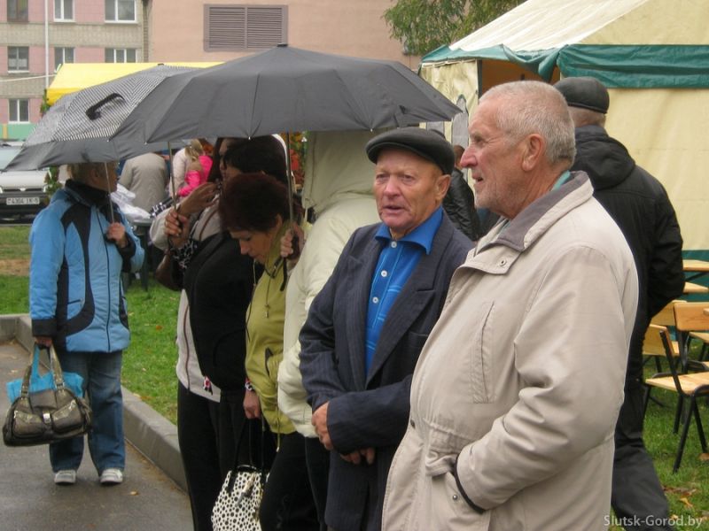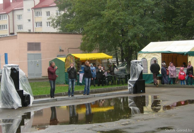 В 12:00 во дворе за магазином №19 по улице Копыльской начался праздник праздник микрорайона Жукова, который организовывал и проводил Слуцкий Городской Дом культуры. Из-за погоды или, может быть, по другим причинам, но людей на празднике было немного - скорее это местные жители, которые вышли из домов на улицу, услышав музыку.