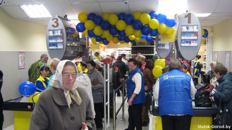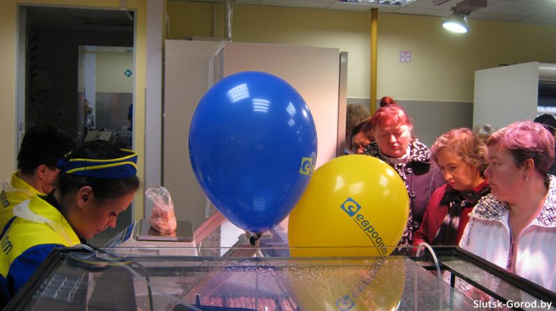 Как всегда, на открытие "Евроопта" пришло много людей, в основном это пенсионеры и местные жители. Посетителям раздавали визитки, шарики с логотипом торговой сети и рекламные буклеты, многие из них делились с продавцами своей радостью от открытия магазина и обещали приходить сюда регулярно.