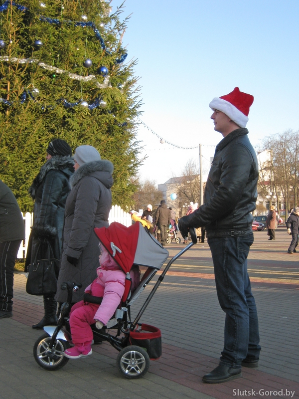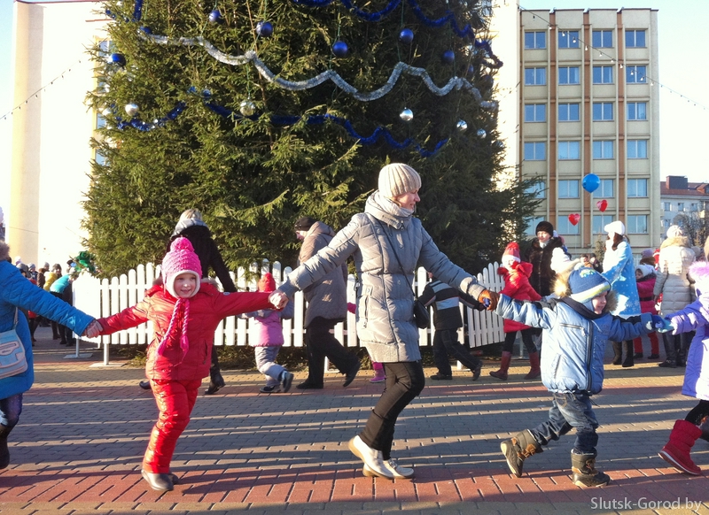 Мероприятие на площади началось с приветствия главного Деда мороза и тройного хоровода вокруг главной ёлки Слуцка, детишки были в восторге.