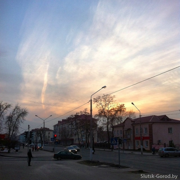 Неделя радовала красивыми закатами и рассветами, в небе проявились краски весны. Следующее фото было сделано 18 февраля рядом с магазином «СлуцкТорг» №58 и выложено в Instagram @slutskgorod. Весенняя птица в облаках...