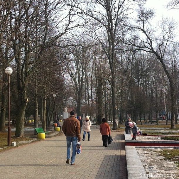 В субботу в Городском парке не по-зимнему многолюдно. Не смотря на то, что местами ещё лежит снег, на лавочках сидят подростки, гуляют мамы с детьми, общаются и веселятся подростки. Фото @slutskgorod:
