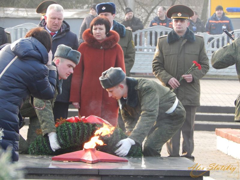 23 февраля, в День защитника Отечества, на мемориальном комплексе в Слуцке состоялось возложение цветов и венков к вечному огню. Память героев, погибших в Великой Отечественной войне, почтили минутой молчания и оружейным залпом.