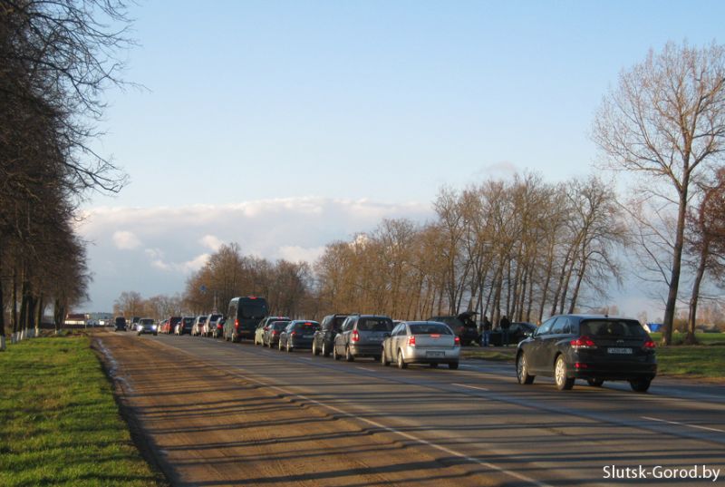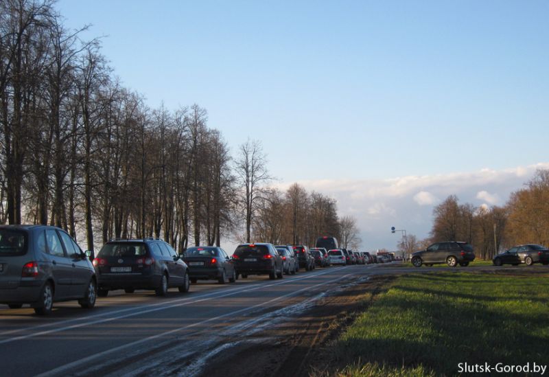 В 19:10 на кольцевой автодороге Слуцка очереди из машин уже не было, пробка начиналась от деревни Василинки, предположительно транспорт скапливается здесь из-за искусственной неровности в деревне Заполье Слуцкого района. Большинство машин в потоке с минскими номерами (7-й регион).